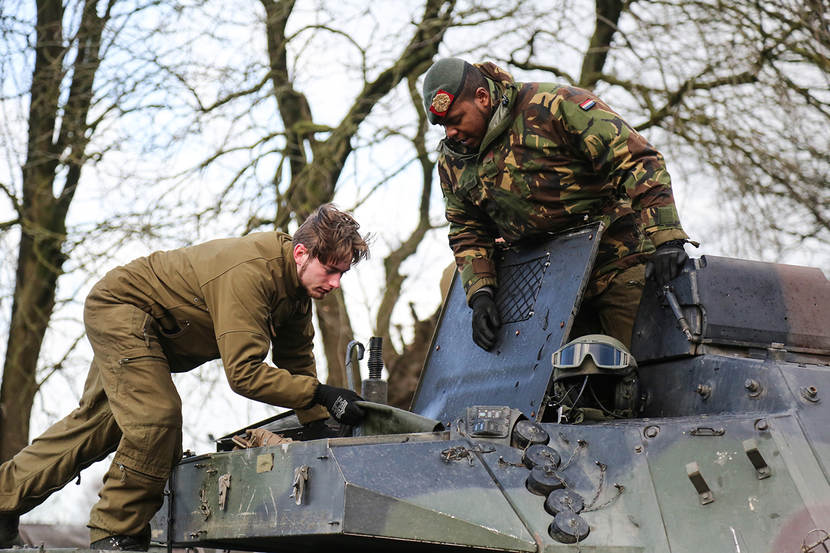 Afgelopen donderdag kwam de eerste lading pantservoertuigen van 45 Pantserinfanteriebataljon Regiment Oranje Gelderland aan in Duitsland. Hier oefent het bataljon nog anderhalve week samen met 414 Tankbataljon voordat het weer per trein doorgaat naar Polen. De rest van de treinen gaat rechtstreeks naar Het Poolse Drawsko. Een reis van zo’n 36 tot 48 uur. “We hebben geen prioriteit op het spoor”, zegt Strijker. “Beetje bij beetje verplaatsen de wagons richting het oosten.” Vanaf het station hoeven de voertuigen geen lange weg over het asfalt af te leggen. “Ze rijden daar zo het oefenterrein op.”