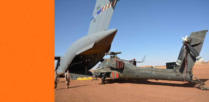 De eerste Nederlandse Apache-gevechtshelikopters zijn terug uit Mali. De 2 toestellen werden onlangs met een C-17 Globemaster transportvliegtuig op vliegbasis Woensdrecht afgeleverd. De machines zijn 2,5 jaar ingezet voor VN-missie Minusma.