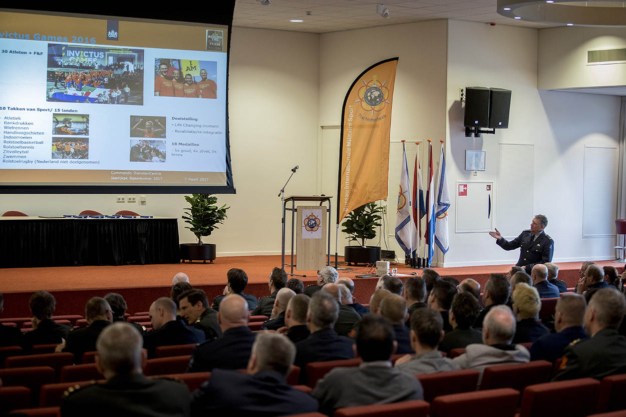 Nu is het dus zaak de Defensie sport weer op de kaart van iedere (oud)militair te zetten. “Er zijn in totaal 67 mensen actief bij de diverse equipes, die dat allemaal als nevenfunctie doen. Dat is al een hele prestatie. In 2017 verzorgt het BIMS, samen met de Militaire equipes, in totaal 70 evenementen . We houden regionale toernooien en om het jaar een MWK, in 2018 zijn we gastheer van het wielrennen. En er staat meer op het programma: het Conseil International du Sport Militaire, de internationale sportbond waarvan Nederland mede-oprichter is, bestaat volgend jaar 70 jaar. De strijd om de Kentish Cup, het oudste voetbaltoernooi binnen de UEFA, bestaat dan 100 jaar. Genoeg dus om naar uit te kijken.”