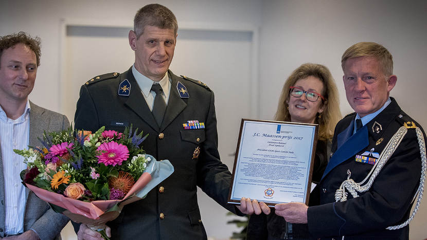 Luitenant-kolonel Fred Sijnhorst heeft tijdens de jaardag de J.C. Maassenprijs ontvangen voor zijn inzet voor de militaire sport.