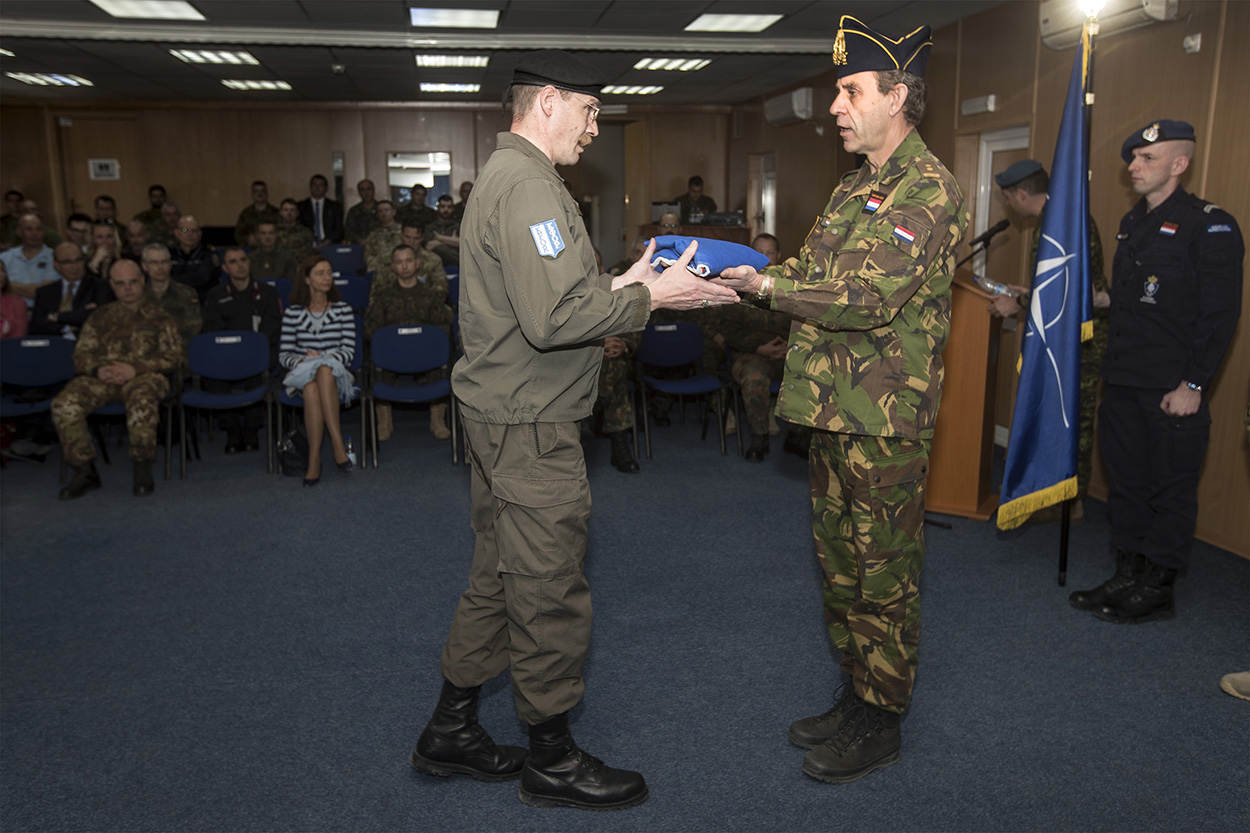 Luitenant-kolonel Huib Rentzing trekt als de commandant van het detachement de Nederlandse deur achter KFOR dicht. Hij bevestigt de precaire situatie: “Nog altijd heersen er spanningen tussen de Serviërs en de Albanezen. Toch ga ik hier hoopvol weg. Sinds het begin van KFOR is een professioneel, multi-etnisch veiligheidsapparaat opgebouwd. Nederland eindigt erg mooi en toepasselijk met een watermanagementproject. Daarvoor zaten we gisteren nog met vertegenwoordigers van een Servische en 2 Albanese gemeenten om de tafel. Zij werken nu samen om wateroverlast te bestrijden. Dat is echt historisch.”