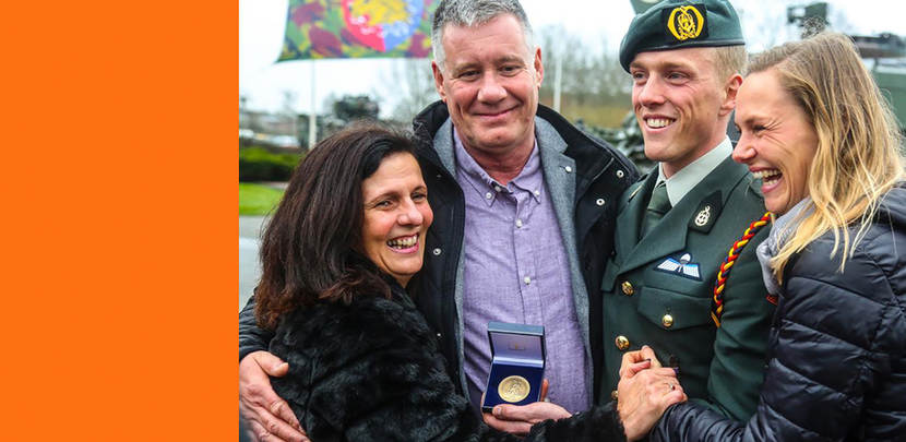 Tweede luitenant Ewout Sijl van 432 Herstelpeloton ontving op 20 maart in Steenwijk de Bronzen Legpenning van het Carnegie Heldenfonds.