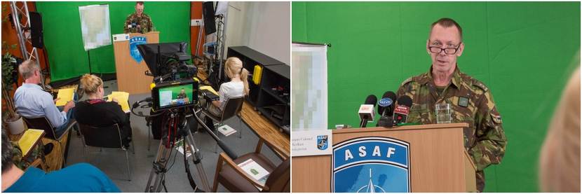 Daarom fact-checkt de overste iedere bewering grondig voor hij erop reageert. Bijvoorbeeld als er in de oefening een F-16 neerstort en de vlieger boven vijandelijk gebied zijn schietstoel gebruikt. Binnen no-time claimt een terroristische organisatie het jachtvliegtuig te hebben neergeschoten en vragen de journalisten om een reactie.”