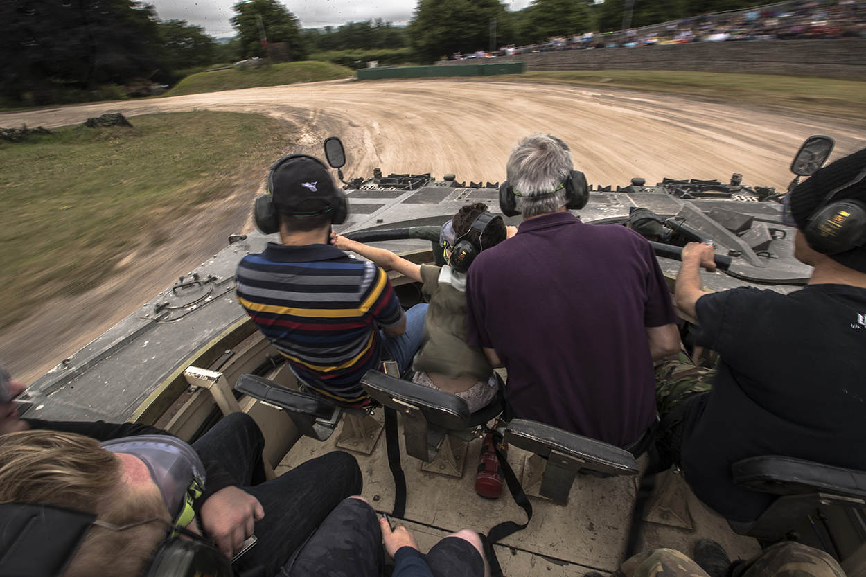 Een typisch Engels jongedame met een gebloemd jurkje en spierwitte benen kijkt bedenkelijk als ze naast de Leopard staat. Haar dolenthousiaste vriend is snel het trapje opgeklommen en zit al klaar. Het meisje volgt wat minder enthousiast, maar eenmaal aan boord gooit ze alle remmen los. "Dit is beter dan een achtbaan", reageert ze na afloop.