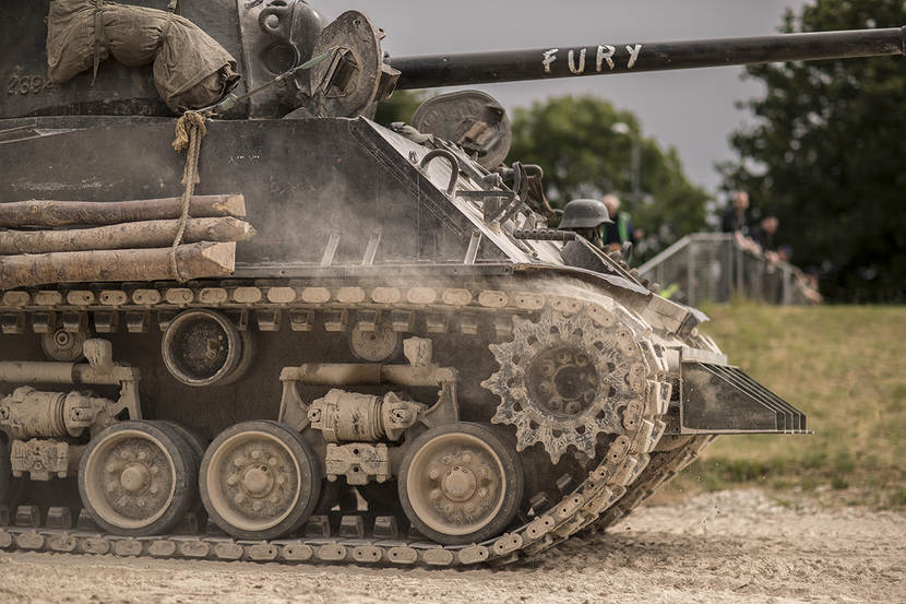 Op het moment dat Ryan Conner een hap van zijn sandwich neemt, dendert een Amerikaanse Sherman voorbij. De tank laat het zand metershoog opstuiven en een dikke laag stof daalt neer. De man kijkt naar de smoezelige boterhammen en haalt zíjn schouders op. "Vies of niet, ik ben allang blij dat ik hier op Tankfest kan zijn."