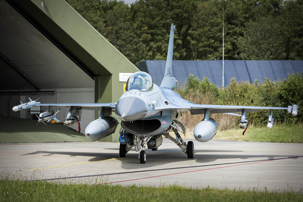 Met oorverdovend geraas kiezen 4 F-16’s het Friese luchtruim. De vliegers moeten extra gas geven en dus meer herrie maken, omdat de kisten volhangen met geleide bommen en luchtdoelraketten. Deze take off met scherpe munitie was afgelopen dinsdag het slotstuk van een alarmeringsoefening voor de luchtcomponent van de Very High Readiness Joint Task Force (VJTF), de ‘brandweer’ van de NAVO. Het is de eerste keer dat Nederland deelneemt aan de zogeheten VJTF Air