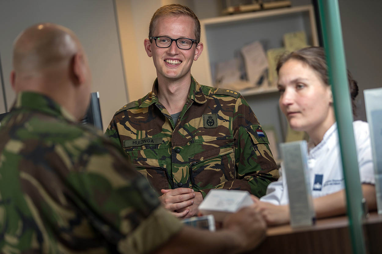 Eens per maand verruilt hij zijn kantoor op de Utrechtse Kromhoutkazerne voor de Centrale Militaire Apotheek in Utrecht. De farmaceutische afdeling die door vrijwel alleen maar vrouwen wordt bemand. “Hier controleer ik vooral recepten, zodat patiënten op een juiste manier geneesmiddelen gebruiken. Het is ontzettend leuk hier af en toe heen te gaan.”