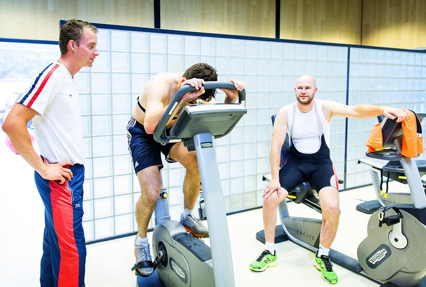 Een sportinstructeur helpt militairen met hun training (foto: Valerie Kuypers).