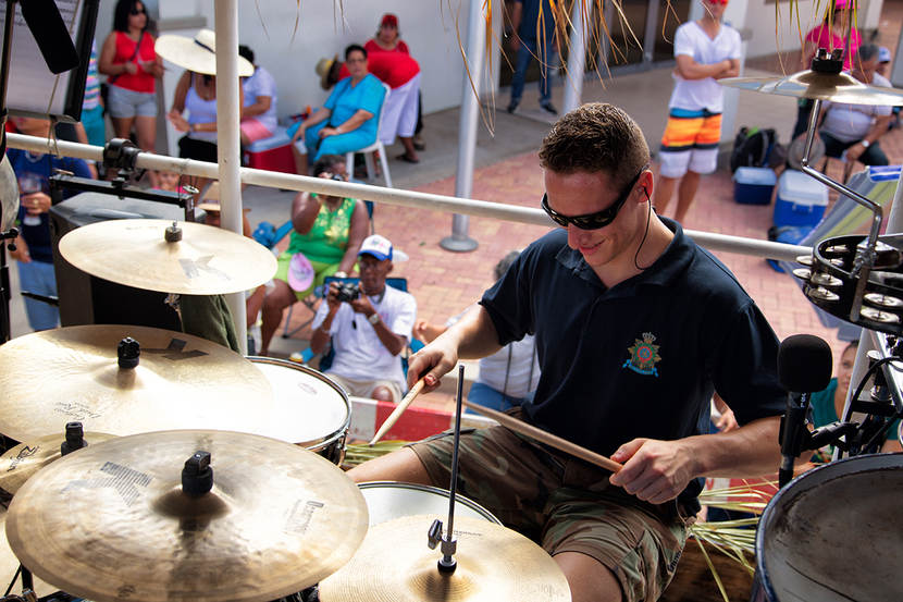 Sinds 8 jaar is hij drummer bij de Tamboers & Pijpers van het Korps Mariniers, drummer bij de Steelband en instructeur. En niet te vergeten als marinier inzetbaar tijdens crisisoperaties over de hele wereld. “De ene dag sta ik bij een medaille-uitreiking en het zou ook zomaar kunnen dat ik voor een wintertraining naar Noorwegen moet. Het is best een drukke baan, maar ik wil het allemaal voor geen goud missen.”