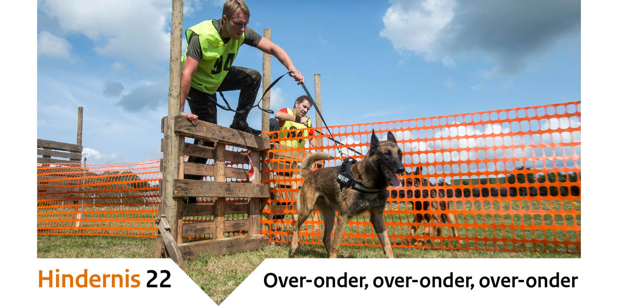 Er waren 24 hindernissen, de één makkelijker dan de andere. Scroll naar beneden en leer van adjudant Willy Stevens, vakcoördinator hondengeleiding en organisator van de biatlon, meer over de meest uitdagende obstakels.