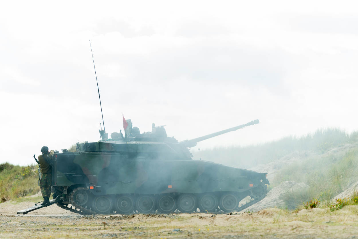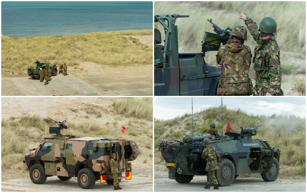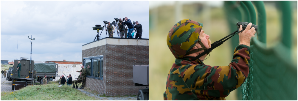 De vrouwelijke Vlaamse adjudant die vanuit de toren perfect zicht heeft op de kalme Noordzee, laat er intussen geen misverstand over bestaan: hier is haar wil wet. Tientallen meters voor en onder haar staan verschillende militaire voertuigen naast elkaar opgesteld achter de duinrand van het Belgische Lombardsijde. Bushmaster, Fennek, Boxer, Mercedes Benz 280 CDI en CV90. Vanaf deze bakken openen de landmachters het vuur op de onbemande vliegtuigjes.