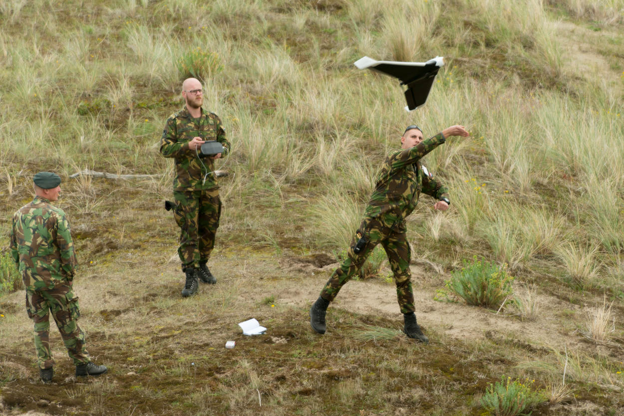 Logisch dus dat veel belangstellenden de proef met eigen ogen willen zien én eveneens willen bijdragen aan het eindrapport. Onder meer het Defensie Grondgebonden Luchtverdedigingscommando (DGLC), onderzoeks- en adviesbureau TNO en militairen uit Zweden, Noorwegen en Roemenië turen opgewonden naar de trillende Phantom drone. Bedienaars van het DGLC hebben het op afstand bestuurbare speeltje zojuist het Belgische luchtruim in gestuurd.