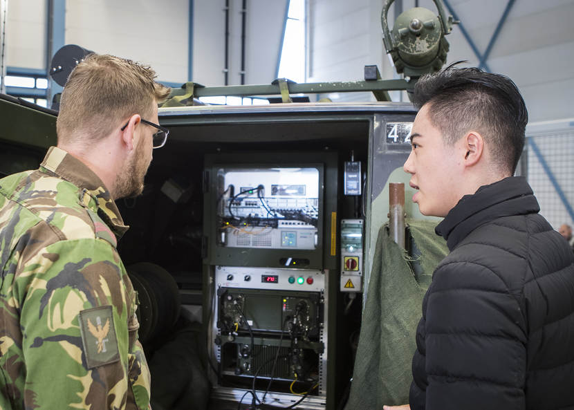 “Ik heb de Koninklijke Militaire Academie altijd wel in gedachte gehouden. Nee, dat heeft niets met een familietraditie te maken. Na mijn studie heb ik nog een jaar aan de TU gestudeerd, maar dat was niet mijn ding. Geef mij maar de praktijk. Voor welk krijgsmachtdeel ik zou kiezen na de uitleg van vandaag? Dat maakt me niet zoveel uit, als ik maar met voertuigen en wapensystemen aan de gang mag. Want ja, ik blijf een engineer.”