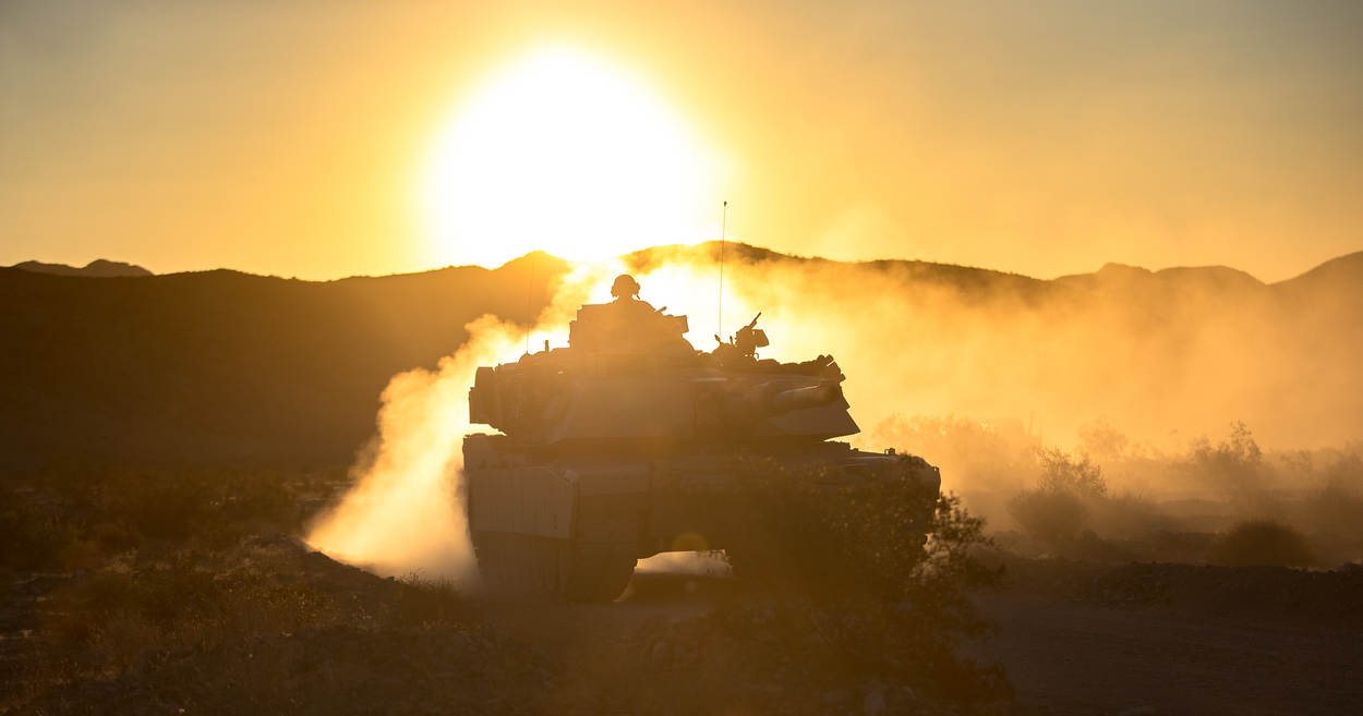 Tijdens de schietoefeningen en manoeuvres tegen een onzichtbare tegenstander zijn onder meer een tankpeloton met zware Abrams tanks en een antitankpeloton actief. “Eenheden die we zelf niet in de bewapening hebben, maar die we in voorkomend geval wel kunnen tegenkomen op het slagveld”, aldus de oefenleider.