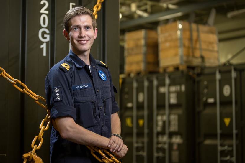 “Het varen vind ik in één woord vet. Ik had niet gedacht dat ik tijdens mijn eerste functie direct op missie zou mogen. En dan ook nog eens op zo'n grote boot. 'Schip' moet ik zeggen. 'Boot' is een no-go binnen de marine. In een volgende functie kan ik zomaar achter een bureau komen te zitten. Daarom ga ik nu zo vaak mogelijk op reis en geniet ik iedere dag van m'n werk.