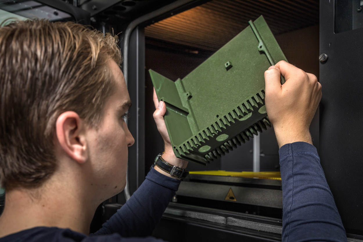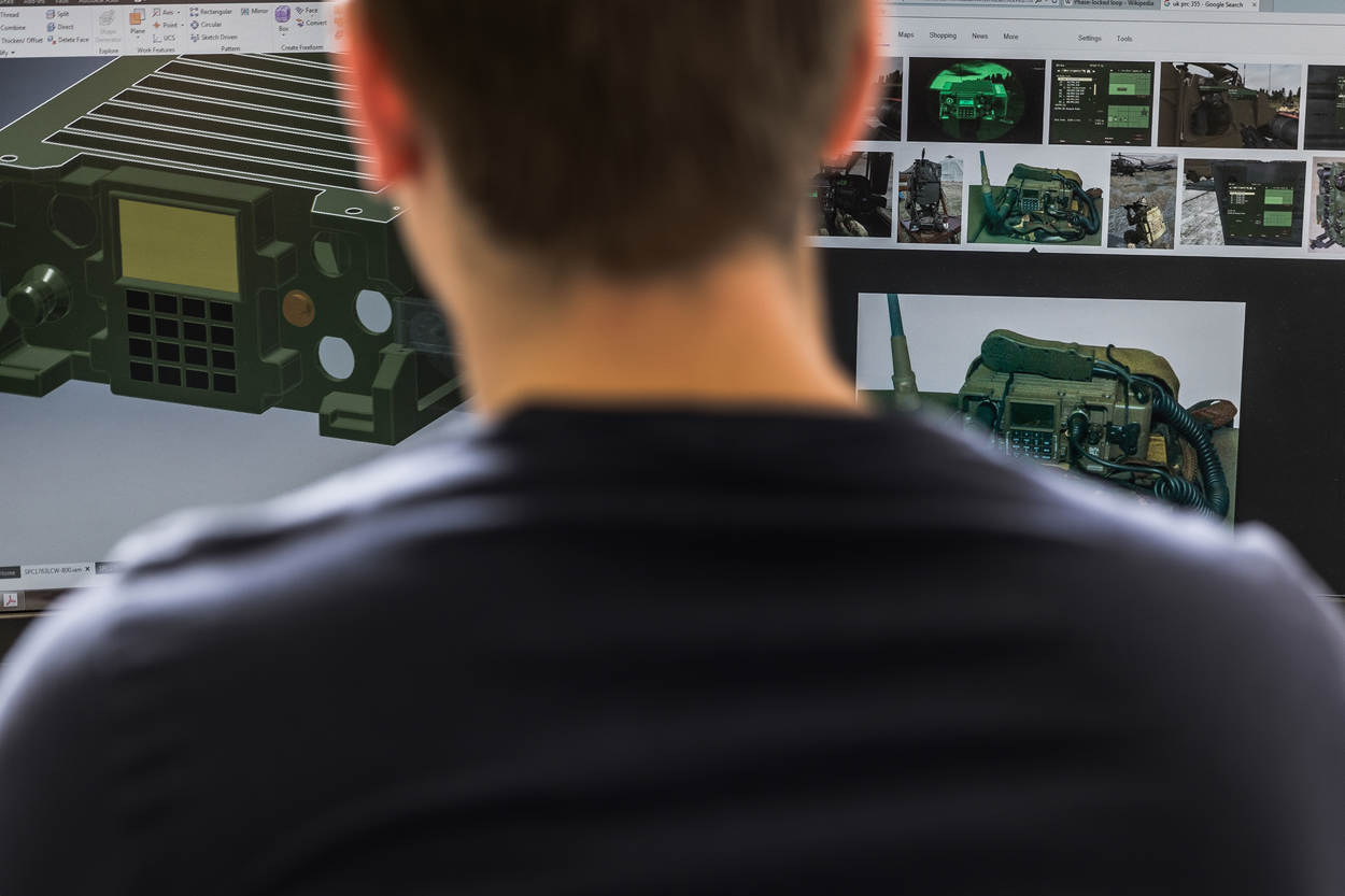 Producten maken die (tot dan) niet bestaan, dat is het werk van de pas 20-jarige Davy. Direct na de middelbare school ging hij aan de slag bij Defensie. De meeste tijd brengt hij door achter de computer; 3D-modellen tekenend. Vervolgens worden zijn virtuele ontwerpen omgezet naar producten in de ‘echte wereld’. Bijvoorbeeld met behulp van een 3D-printer.