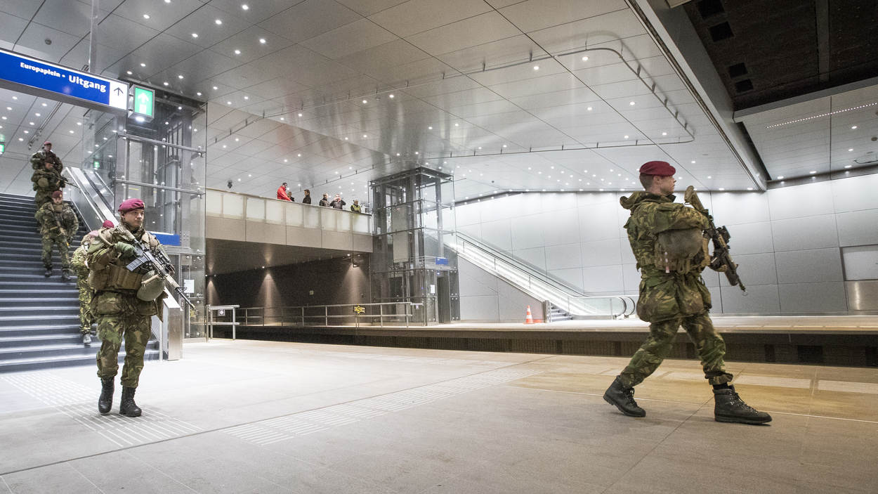 “Zo, dat zijn serieuze geweren”, roept een voorbijganger. In de buurt van de Amsterdam RAI maakt een peloton militairen zich gereed om de beveiliging van metrostation Europaplein over te nemen van de politie. De zwaar bewapende specialisten trekken bekijks. De hoofdstad was vorige week het toneel van een grootschalige terreuroefening.