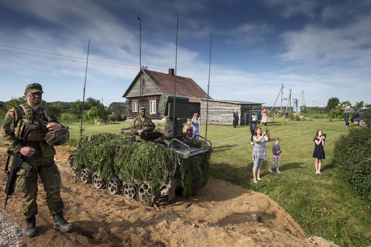 Defensiefotograaf sergeant-majoor Gerben van Es is genomineerd voor de prestigieuze fotoprijs de Zilveren Camera. Van Es maakte het bovenstaande beeld op 20 juni vorig jaar in de Litouwse stad Jonava, tijdens de NAVO-oefening Iron Wolf. Op de foto zien we de lokale bevolking, die aandachtig naar de oefening kijkt.