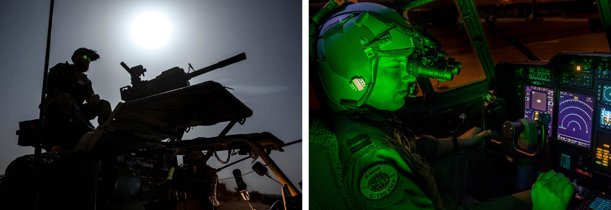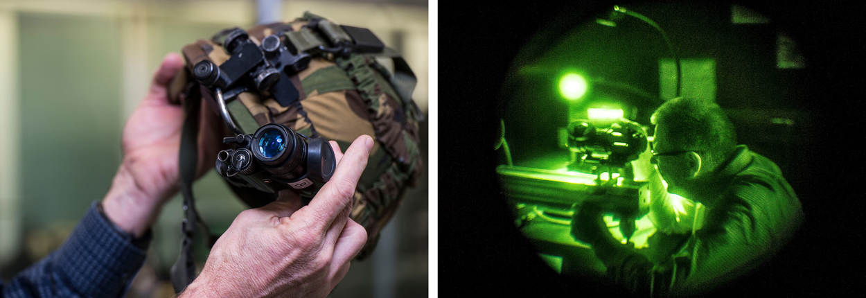 Defensie heeft duizenden nachtzichtkijkers, nachtrichtkijkers (voor op wapens), en hulpstukken waarmee militairen in het donker kunnen zien. Deze kijkers versterken restlicht. Een klein beetje licht van bijvoorbeeld de sterren of de maan is genoeg om een plaatje van de omgeving te creëren. “Al deze apparatuur wordt hier gerepareerd en gecontroleerd", zegt Woord.
