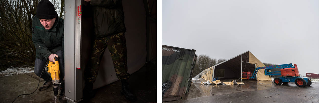 Op vliegbasis Leeuwarden staan nu 2 tenten vlak bij elkaar, ook gebouwd door Roos. De ene werd vorig jaar opgezet voor extra opslag, de tweede deze maand. “Dit is toch een mooi plaatje zo?”, zegt Roos. “F-16’s op de achtergrond, 2 grote tenten; als ik dit zo zie, ben ik daar wel trots op.”