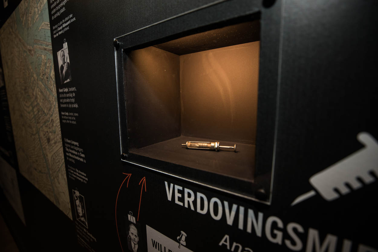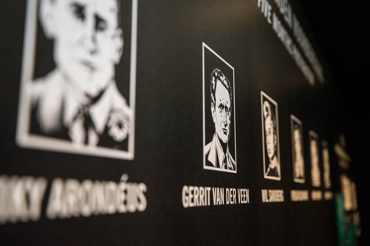 In de interactieve aanpak ook veel geluid. Zo hoor je de kunstenaars discussiëren over het gebruik van geweld. Geweerschoten illustreren de executie. Verder is er bij de aanslag gebruikt materiaal te zien en de afscheidsbrieven die de 12 verzetsmensen aan de vooravond van hun executie schreven aan hun dierbaren. De wanden van de expositie worden opgesierd door levensgrote striptekeningen van tekenaar Rob Worst. “Je loopt als het ware door een stripverhaal”, legt Metz uit.