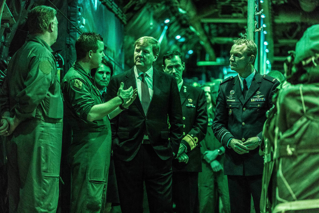Koning Willem-Alexander liet zich vorige week vrijdag rondleiden op vliegbasis Eindhoven. Ook nam hij een kijkje in de C-130 Hercules. Foto: Louis Meulstee.
