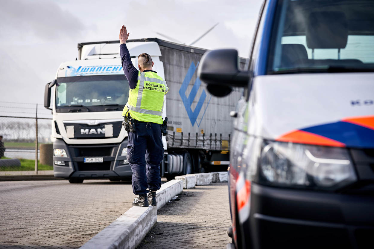 De marechaussee voert controles uit bij de veerdienst in Hoek van Holland. Foto: Phil Nijhuis.