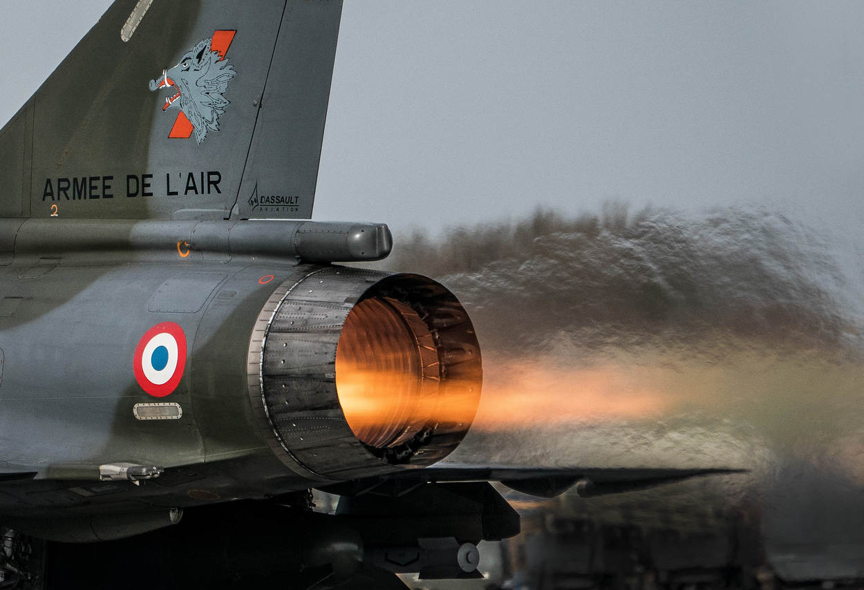 Een bijzondere foto van een Franse Mirage 2000D tijdens de grote, internationale oefening Frisian Flag op vliegbasis Leeuwarden. Foto: John van Helvert.