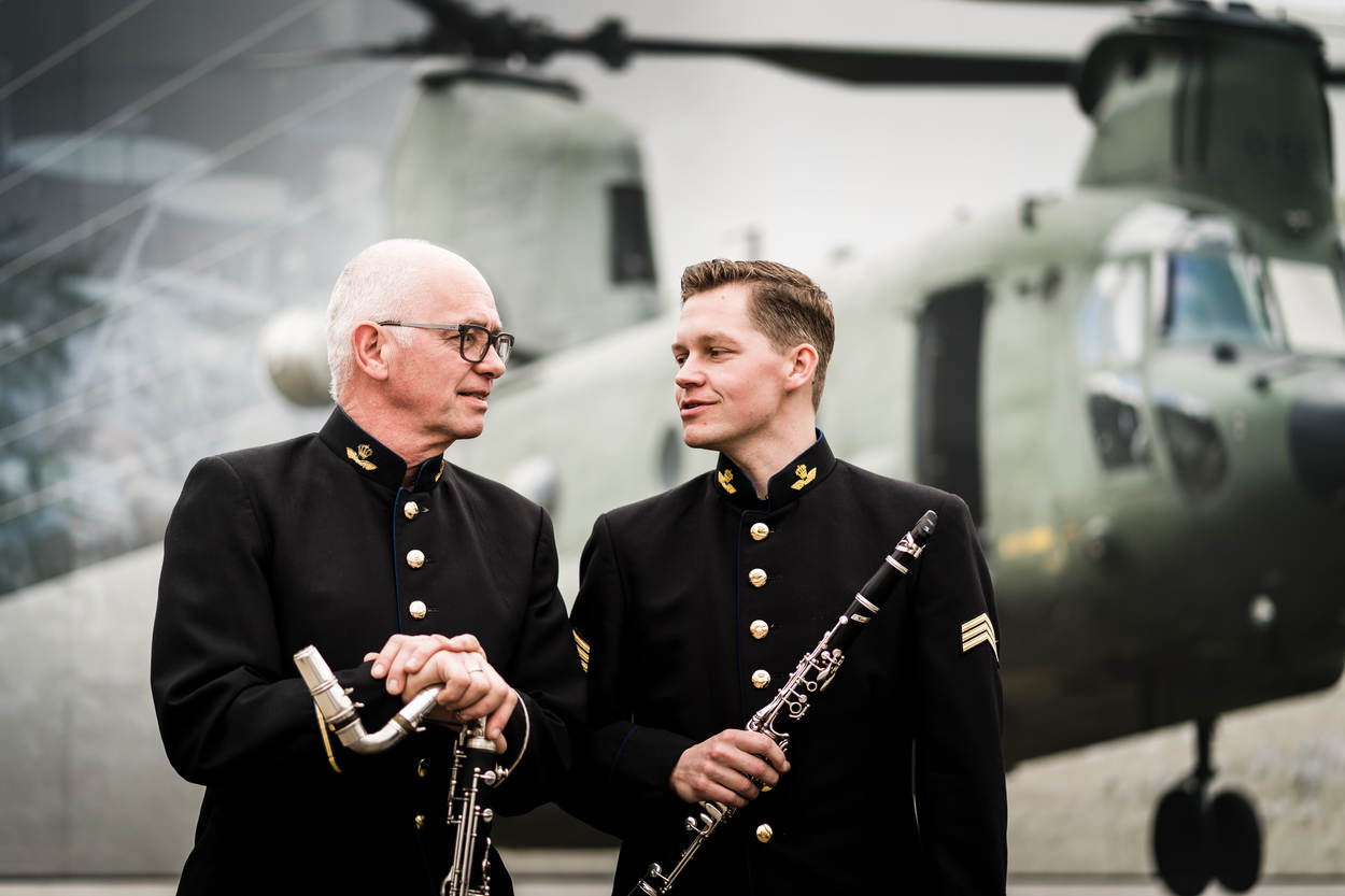 Samen spelen vader en zoon nu de sterren van de hemel. Of het nou bij militaire ceremonies is, bij ‘goodwillconcerten’ voor omwonenden van vliegbases of bij de opening van het Nationaal Monument MH17.