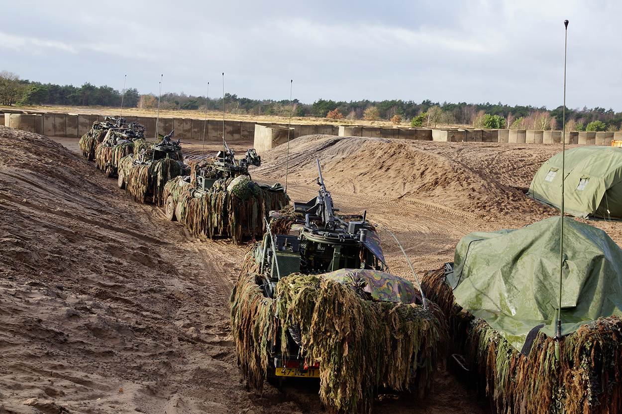 Tijdens een oefening van 11 Luchtmobiele Brigade op de Oirschotse Heide moet ook even gepauzeerd worden. En wel in de compound. Foto: Andre Luijtelaarvan.