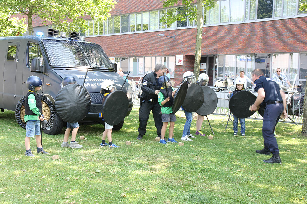 Een aantal welpen van scouting Hannie Schaft uit Almere mag meedoen met een demonstratie van de Koninklijke Marechaussee tijdens de Landelijke Veiligheidsdag in Almere. Foto: korporaal-1 b.d. J. Plaatsman.
