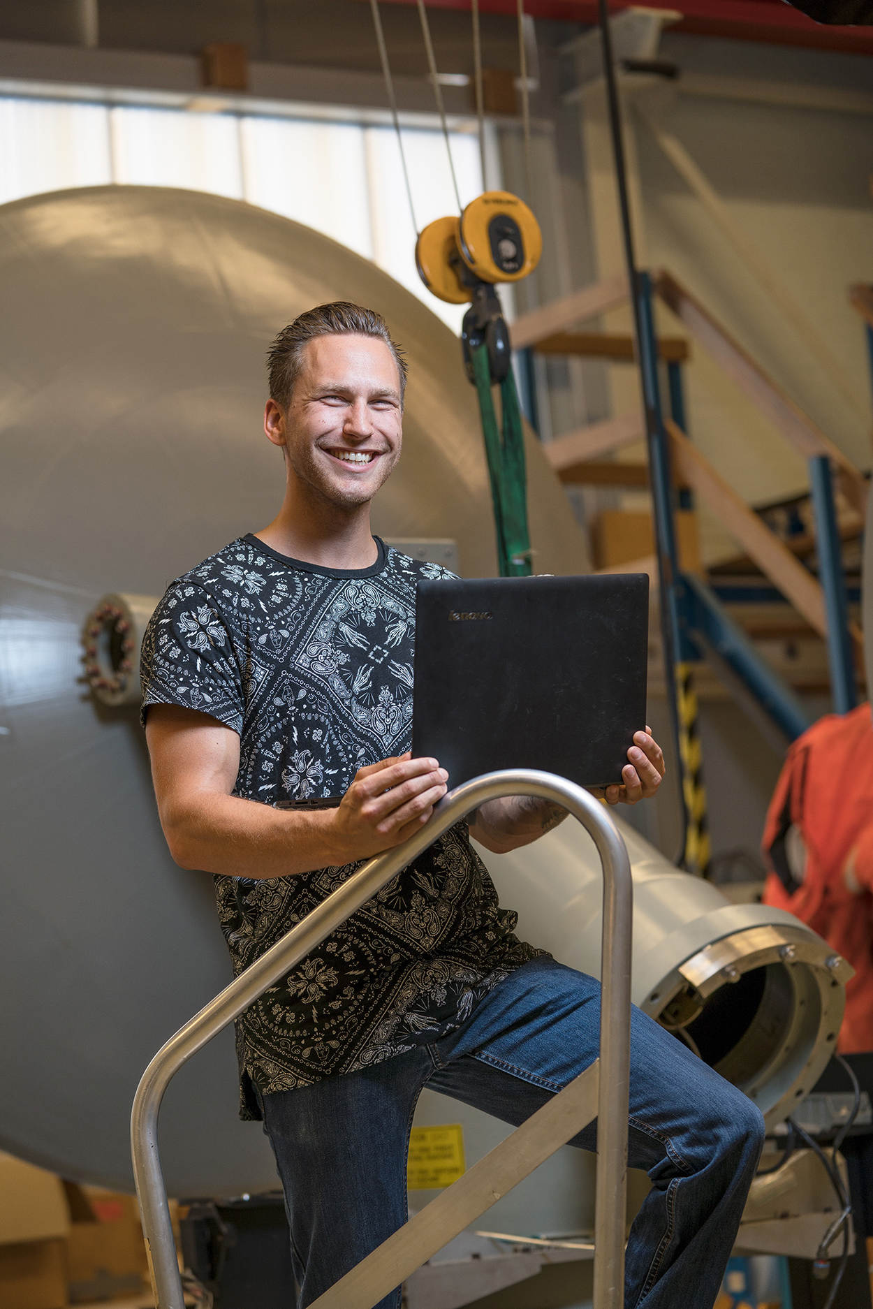 “Bij Defensie kun je echt alle kanten op, daar ben ik het levende bewijs van. In 2008 kwam ik binnen als pantserinfanterist, vervolgens ben ik de techniek in gegaan als monteur, doorontwikkeld tot development 3D-ontwerper en uiteindelijk in mijn huidige functie als projectleider beland. Momenteel werk ik met mijn team aan de ontwikkeling van onze eerste ruimtesatelliet. Een pittige, maar onwijs mooie uitdaging. Dat Special Products producten ontwerpt, ontwikkelt en realiseert die wereldwijd voor de militair worden ingezet maakt het technisch erg interessant. 4 jaar geleden maakte ik de stap van de infanterie naar een burgerfunctie en daar heb ik tot op heden geen spijt van. Als militair ben je doorgaans veel van huis en dat is prima. Maar mijn leven is inmiddels enigszins veranderd en daar past een stabielere thuisbasis bij. Daarnaast heb je als burger iets meer doorgroeimogelijkheden. Dat wordt vanuit Defensie zelf ook gestimuleerd. Er zijn tal van opleidingen en cursussen die je kunt volgen om jezelf te blijven ontwikkelen. Voor mij een heel groot voordeel; van stilstaan raak ik verveeld.”