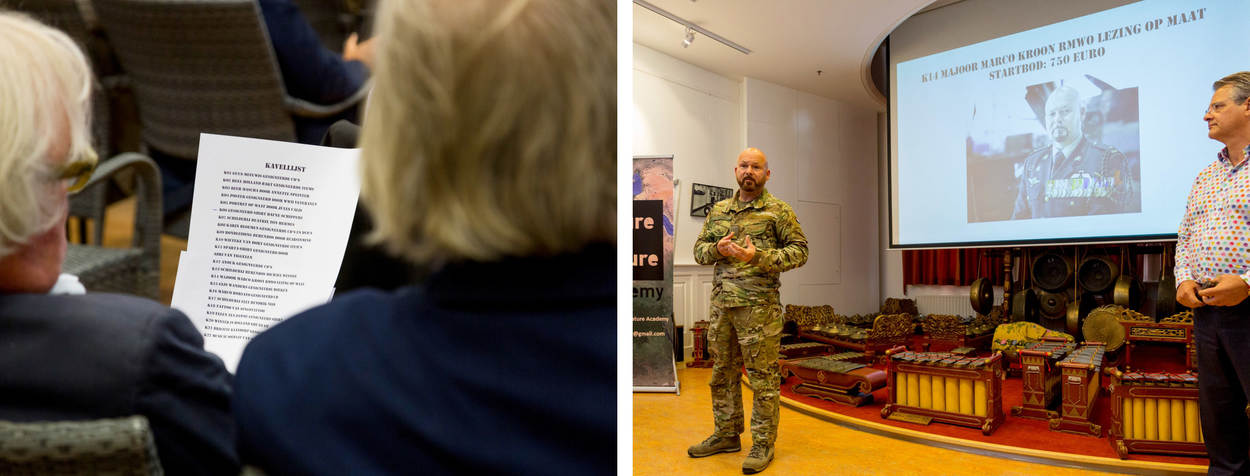 Colin weet zijn 7 medereizigers te enthousiasmeren voor zijn berenproject en gaat als aanjager direct aan de slag. “Ik meldde ons project aan bij Bears in Mind, de stichting achter het Berenbos, en sleepte de eerste sponsor binnen: mijn eigen werkgever”, grijnst hij opgetogen. “Daarmee was de eerste € 1.000,- van de minimale € 5.000,- die we wilden ophalen binnen.” Diverse inzamelingsacties volgden. Zo haalt hij samen met zijn 8-jarige dochter € 200,- op door chocomel en brownies te verkopen op een rommelmarkt, gaan hij en zijn team met de pet rond bij familie, vrienden en collega’s en organiseren ze een heuse veiling in Koninklijk Tehuis voor Oud-Militairen en Museum Bronbeek dat gratis ter beschikking wordt gesteld. Met die laatste actie haalt het team maar liefst € 4.390,- op. “Dit overstijgt mijn verwachtingen”, jubelt de fuselier na de veiling, een week voor zijn vertrek.