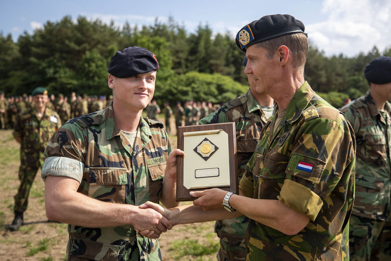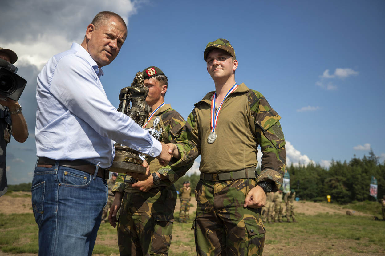 Wijnhoud slaat het evenement vanaf de zijlijn gade. De sfeer zit er goed in, het is mooi weer, de deelnemers zijn enthousiast en de organisatie van het evenement klinkt als een klok. Met dank aan het Schiet Instructie Controle Team Klein Kaliber Wapens (SICT KKW), dat er samen met de LO/Sport Organisatie een mooie happening van maakt. Een mooie happening zeker, maar jammer dat de opkomst relatief mager is. Want met slechts 19 geweerteams - waarvan 5 buitenlandse - is de wedstrijd geen goede afspiegeling van het schietniveau van de krijgsmacht. “Het zou geweldig zijn als ieder bataljon en zelfstandige eenheid - net als onder meer 17 en 44 Pantserinfanteriebataljon en de Natres - hieraan kunnen voldoen.”