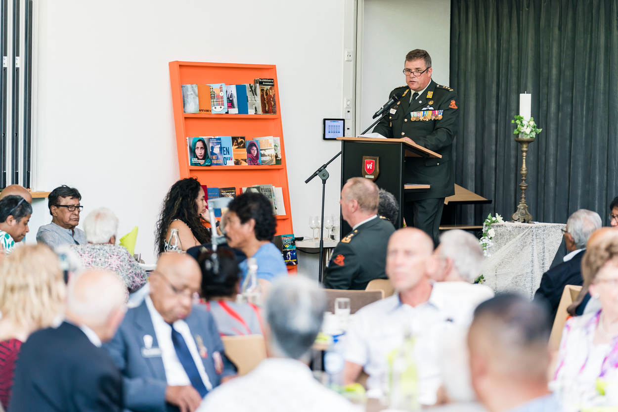 Maar hoe doe je dat: erkenning en waardering bevorderen? “Eigenlijk heel praktisch”, vertelt De Vos. “Ontmoetingen faciliteren tussen veteranen onderling en tussen veteranen en de samenleving.” Hij noemt de Nederlandse Veteranendag als bekendste voorbeeld. “Daar ontmoet de samenleving onze veteranen en luistert naar hun verhalen”, legt de directeur uit. “Daar begint het mee, met vertellen en luisteren. Je kunt geen waardering voor iets krijgen als de ander niet weet wat je gedaan hebt.”