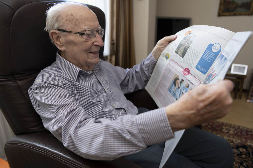 André du Pon staat volop in de aandacht. Voor zijn vele vrijwilligerswerk, tot een paar jaar geleden toe, krijgt hij als oudste Nederlander ooit een Koninklijke onderscheiding. En, niet onbelangrijk vindt hij zelf, het Mobilisatie-Oorlogskruis. “Daarvoor heeft burgemeester van Vlaardingen Annemiek Jetten gezorgd. Ja, we zijn een beetje verliefd op elkaar”, zegt hij met pretoogjes.