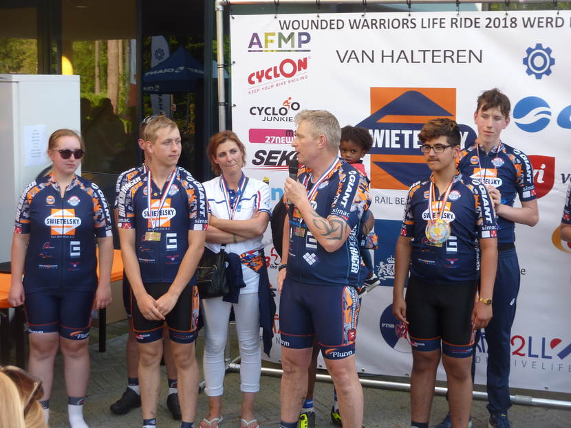 Voor Douwe Schoonderwaldt, actief dienend als majoor der mariniers, was dit project een uitgelezen kans. “Zelf heb ik veel uitzendervaring en voel me daardoor sowieso verbonden met collega's die gewond of beschadigd zijn geraakt op missie. Ik zet me ook al jaren in voor deze mensen. Zelf een fervent fietser voelde ik me ook al snel thuis bij deze club, de Wounded Warriors en hun doelstelling. Het is belangrijk voor de militair die de actieve dienst verlaat dat hij niet van de radar verdwijnt en thuis in zijn eentje alles moet verwerken. Fietsen kan daarin een helende werking hebben. Met zo'n tocht probeer je, juist door samen af te zien, mensen stapje voor stapje op de goede weg weer in de maatschappij te krijgen. Doorzettingsvermogen kweken, daar hebben ze allemaal baat bij. Ook de kinderen die deze keer meededen.”
