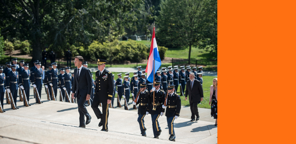 Minister-president Mark Rutte legde tijdens zijn bezoek aan president Trump van de Verenigde Staten een krans op het graf van de onbekende soldaat, op de Amerikaanse nationale begraafplaats Arlington onder de rook van Washington DC.