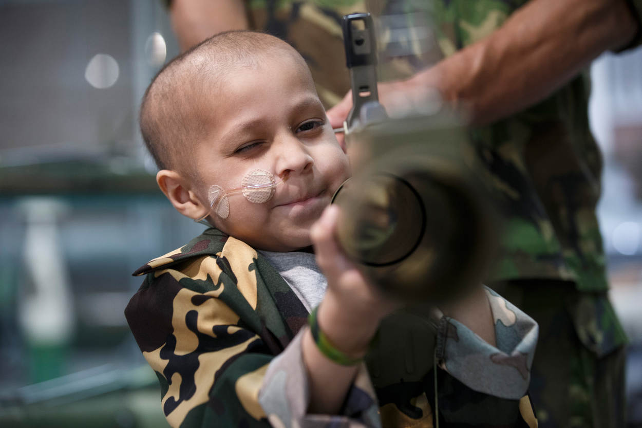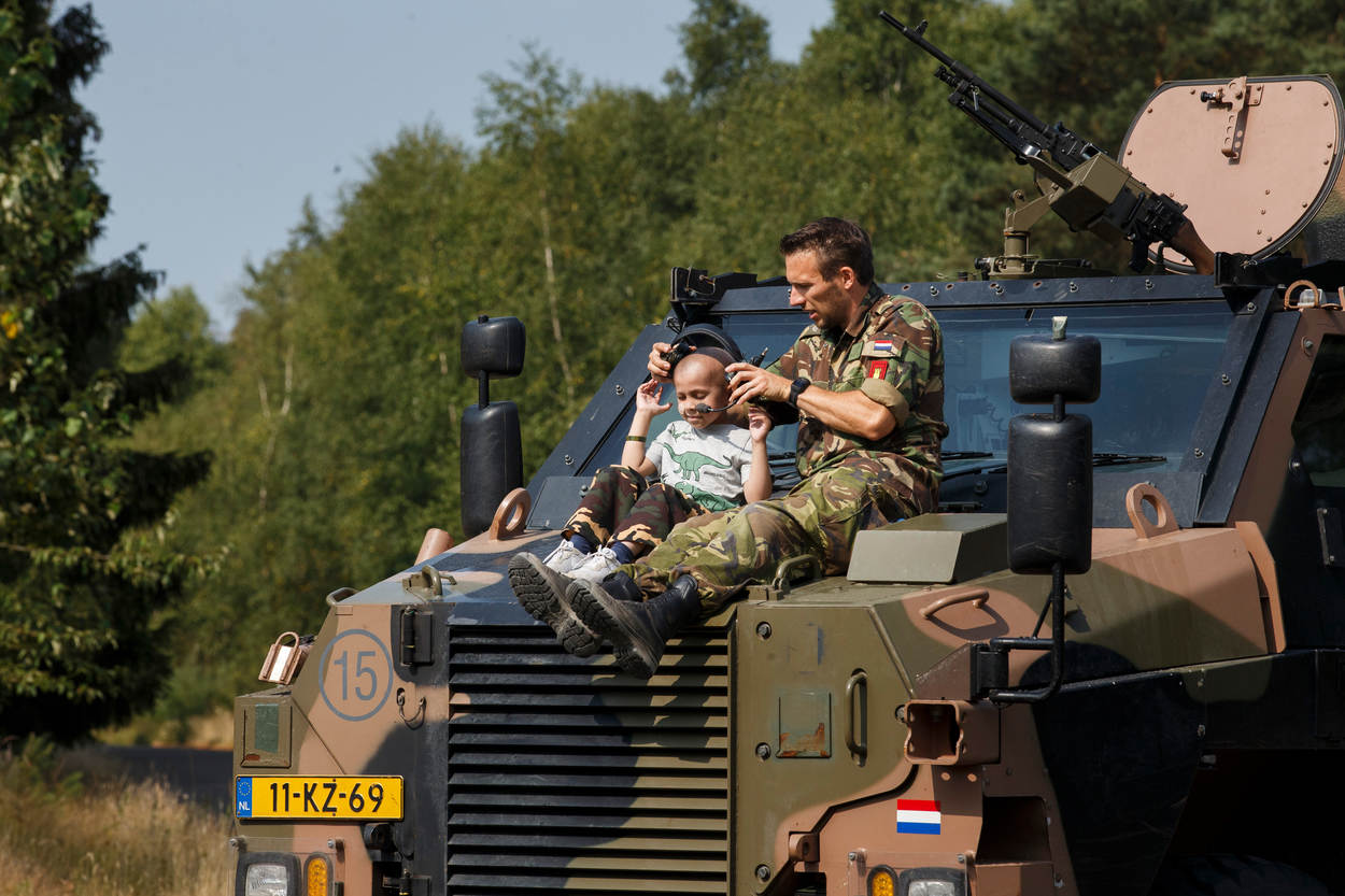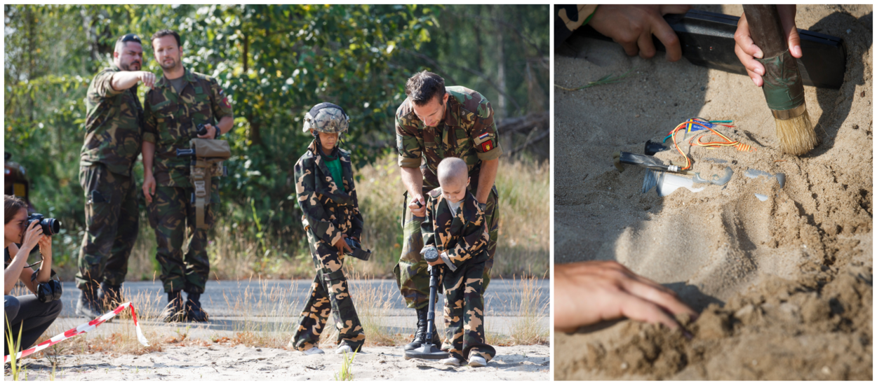 Toen Duuk bij Make-A-Wish mocht aangeven wat zijn grote droom was, hoefde hij er niet lang over na te denken. Vader Joep: “Vanwege het neuroblastoom, een kwaadaardige tumor, wordt Duuk behandeld in het Prinses Maxima Centrum Utrecht. Daar komen ook weleens militairen langs. Duuk was van hen zo onder de indruk dat hij iets wilde doen met ontploffingen, militairen én stoere voertuigen.” En waar kan dat nu beter dan bij de EOD, die jaarlijks 2500 explosieven opspoort en onschadelijk maakt.