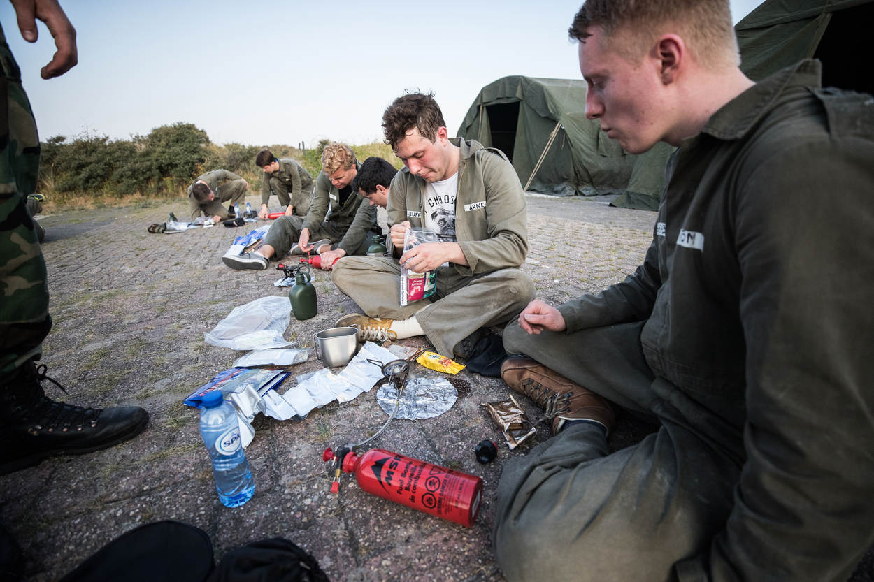 De twintigers en dertigers werden een paar dagen ondergedompeld in het militaire leven. De ene helft was te gast bij School Luchtmobiel in Schaarsbergen en de andere helft ging naar het Korps Mariniers op Texel.