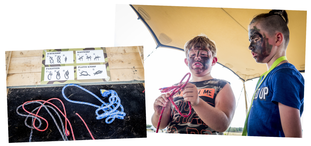 Van camoufleren, spoorzoeken en knopen leggen tot een tent opzetten, de hindernisbaan over rennen en minitank rijden. De ideale manier om kinderen kennis laten te laten maken met het militaire leven. “Je kunt met ze langs een tank lopen, maar als ze zelf iets mogen doen blijft het veel meer hangen”, vertelt moeder Annemarie.