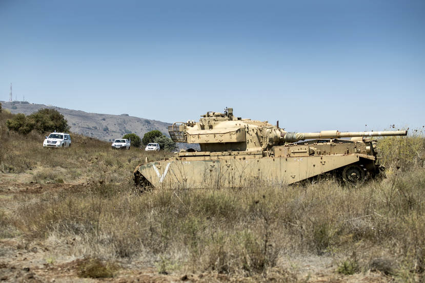 Marineman Hartholt en z’n landmachtcollega kapitein Inge Gielens (35) kijken vanaf Observation Post 55 in Israël uit op een heuvelachtig zandlandschap, met her en der diepgroene beplanting. Rechts zien ze Jordanië, links de Golanhoogten en voor hen eindigt de bufferzone Area of Seperation (AOS). “Om deze zone draait het allemaal”, benadrukt officier Gielens.