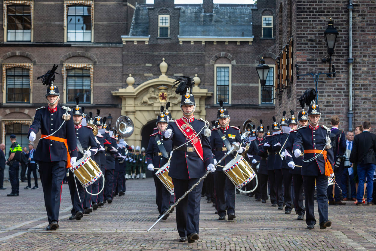 Defensie heeft de zonovergoten Prinsjesdag in Den Haag weer groots ondersteund met de inzet van circa 1.500 militairen voor ceremoniële taken. Van minuutschoten en de muziekkapel tot een vaandelwacht. Verschillende defensiefotografen omzoomden het parcours om het tafereel vast te leggen.