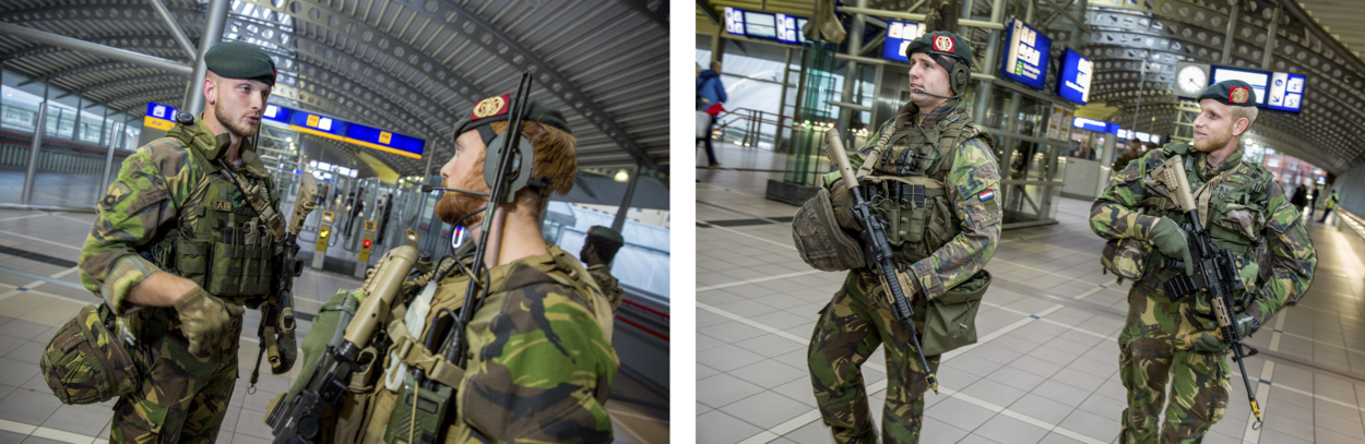 In het begin van de middag rijden zo’n 80 militairen van 44 Pantserinfanteriebataljon uit Havelte Amersfoort binnen. Tegen 18.00 uur neemt een deel van hen de politieposten voor Amersfoort Centraal station over. Een ander deel bewaakt 2 gebouwen verderop waarop een ‘verhoogde dreiging’ zit. De politie houdt de leiding. En ook zij laten een nieuwe, kleinere eenheid uit Limburg aanrukken.