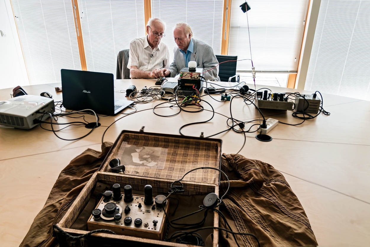 “Het is de spanning”, verontschuldigt Grisnigt zich als hij halverwege zijn bericht hapert. Hij schuift de modernere radioset waarmee hij in deze 21e eeuw een bericht naar Engeland tracht te sturen, door naar de man naast hem. In razend tempo klinken de piepjes weer door de zaal. “Ik had nog zo goed geoefend thuis”, verzucht hij. De aanwezigheid van de NOS, en aan de andere kant van de Noordzee, de BBC doen de spanning te veel stijgen.