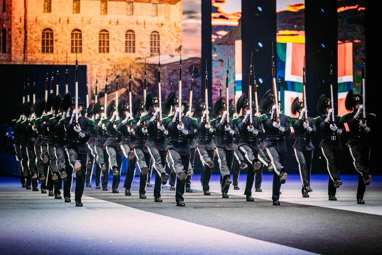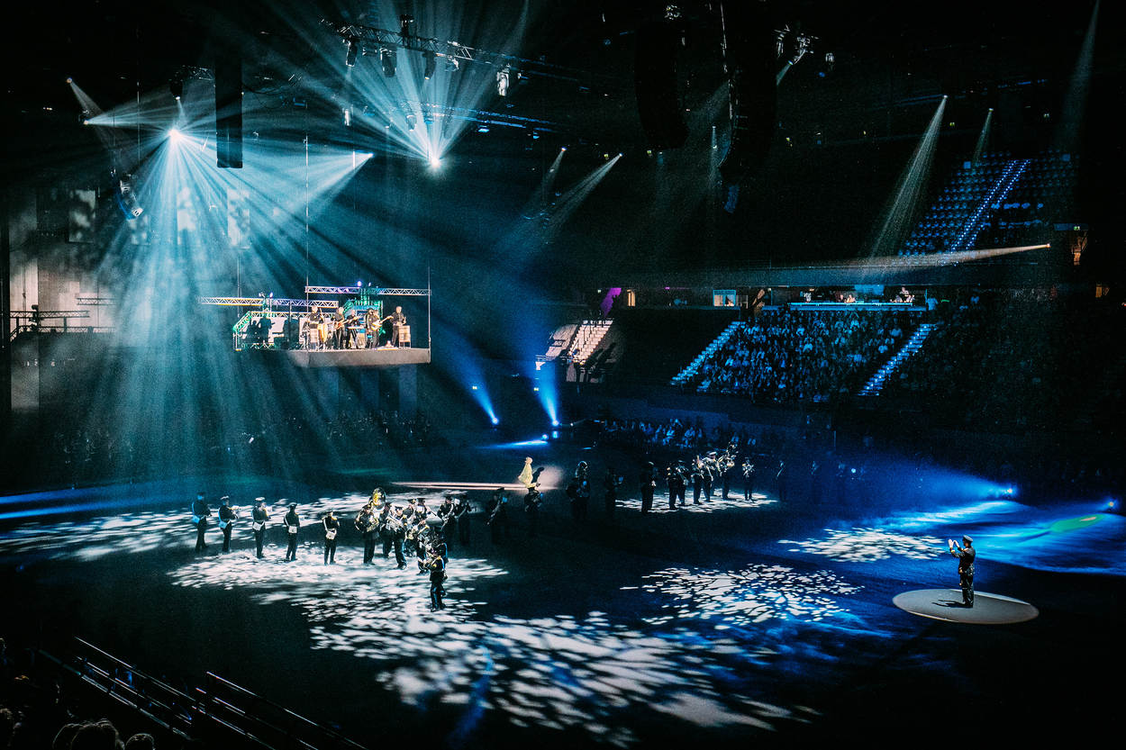 De aankondiging over de vernieuwde en gemoderniseerde taptoe was al veelbelovend, met de uitvoering stelde de organisatie de vele bezoekers niet teleur. Het nationale – militaire – muziekfestijn in Ahoy Rotterdam was het afgelopen weekend een smaakvolle mix van muziek, dans en show. En uiteraard ontbrak, in alle dimensies, ook het militaire aspect niet. Maar de taptoe is duidelijk meer dan alleen het militaire muziekfestival van weleer, al vormen de diverse orkesten van land- en luchtmacht, marechaussee en marine logischerwijs de hoofdmoot van de musici. Maar naast militaire muziek wisselen pop, klassiek en militair elkaar geregeld af. Eveneens met de nodige show, zoals bij het orkest van de Koninklijke Luchtmacht waarbij de ritmesectie per ‘Chinook’ afdaalde. De organisatie nodigt ieder jaar gasten van over de hele wereld uit. Het verst van huis was de Japanse luchtmacht Central Band. Voor het eerst in het 64-jarig bestaan van de taptoe, kwam er een muzikale delegatie uit dit land. Het demonstratieteam Blue Impulse was in Ahoy uiteraard niet met hun echte Kawasaki T-4 trainingsvliegtuigen aanwezig, maar daarvoor had de delegatie een passende oplossing bedacht. Van dichter bij huis was het muziek- en acrobatiekkorps van de Parijse brandweer. Bij hun optredens, onder ander op een medley van popmuziek, werd maar al te goed duidelijk hoezeer de nieuwe LED-achterwand van meerwaarde is. Dan weer stond ‘Ahoy’ aan de voet van de Eiffeltoren, het volgende moment op de stoep van de nachtclub Moulin Rouge. De acrobatiek die de 18 Parijse mannen en 1 vrouw lieten zien, was van een zeer hoog niveau. Al een aantal jaar is ook het Nederlands Politieorkest vaste gast. De musici verwezen duidelijk naar hun inzet vorig jaar op Sint-Maarten. Dergelijke koppelingen waren er ook bij de andere militaire orkesten, zoals bij de Koninklijke Militaire Kapel ‘Johan Willem Friso’ dat deze zomer in Litouwen optrad.