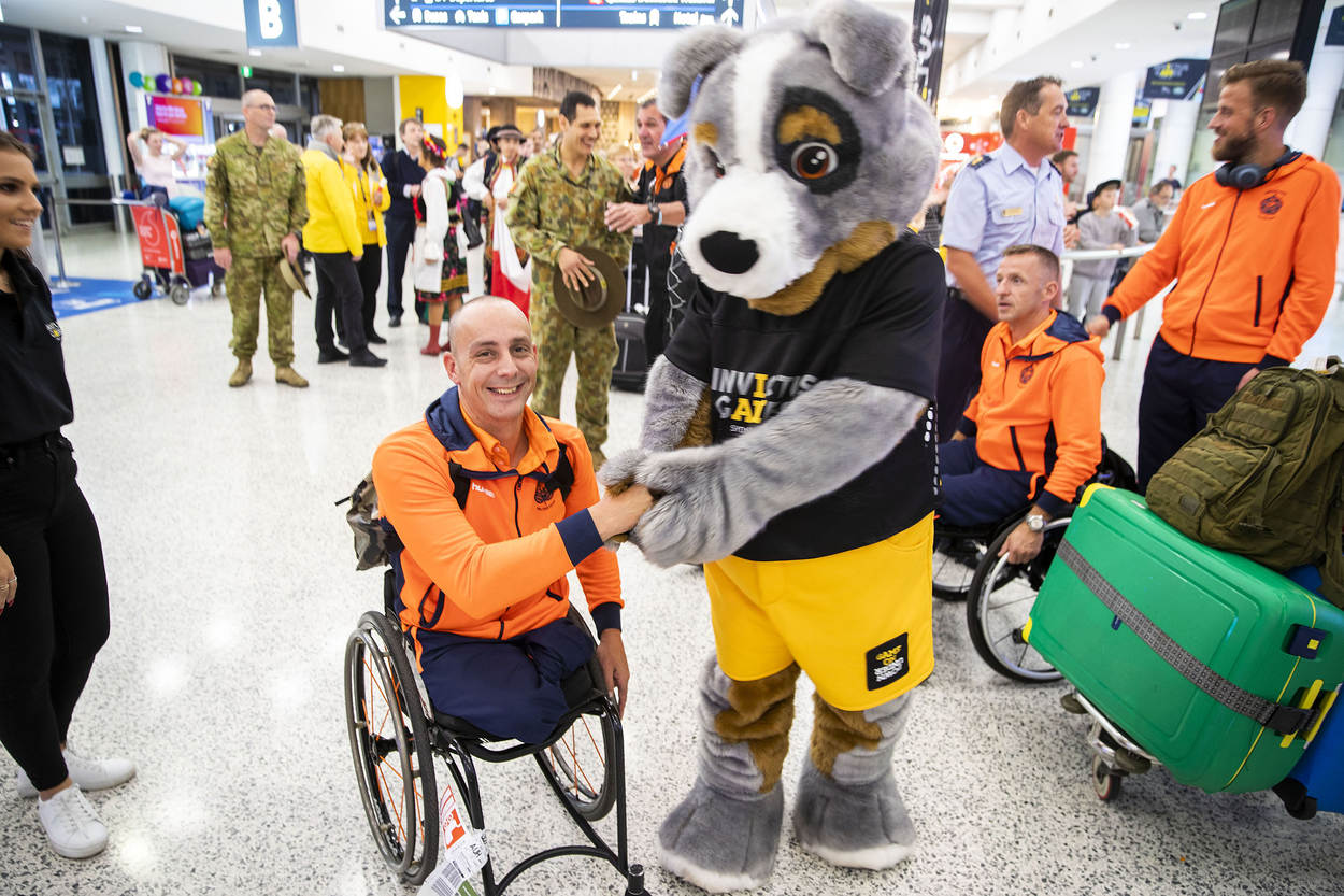 De atleten en de staf worden opgewacht door de Nederlandse defensieattaché in Australië, luitenant-kolonel Elmar Hermans en zijn partner Simone Steendijk. Ook supervrijwilliger Hannie Page en Invictus-mascotte Cobber zijn erbij. De sporters hebben in alle opzichten een lange weg gekend naar de 4e editie van de Invictus Games.