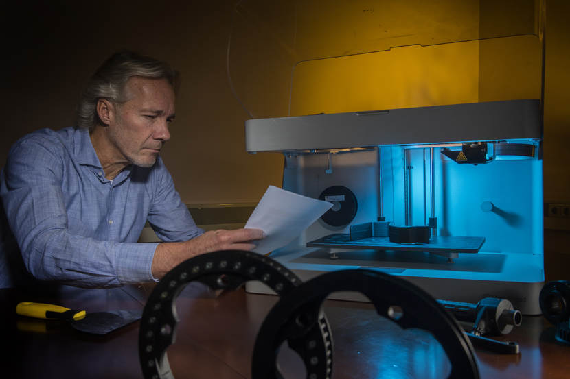 Bart Zwiep is ervan overtuigd dat 3D-printen binnen afzienbare tijd, op grote schaal wordt doorgevoerd binnen de krijgsmacht. “De meerwaarde is enorm. Nu gaat het nog om relatief kleine voorwerpen, maar het wordt steeds groter. Voor het einde van het jaar willen we een stoel en tafel gemaakt hebben. En als we straks ook met metalen kunnen printen, kunnen we bouten en moertjes maken. Dan kan kapot materieel nog sneller worden hersteld.”