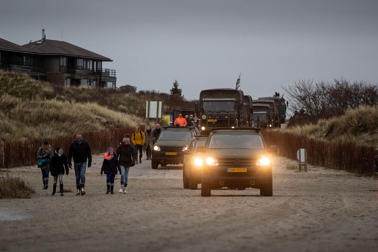 Vrijdagochtend om 06.30, amper 12 uur na de oproep van burgemeester Van Gent, zitten alle militairen bepakt en bezakt op de veerboot naar Schiermonnikoog. De planning is in eerste instantie om tot zaterdagavond op het eiland te blijven. Naast militairen zijn er ook talloze vrijwilligers op de been die in dit laatste weekend van de kerstvakantie hun steentje bij willen dragen.