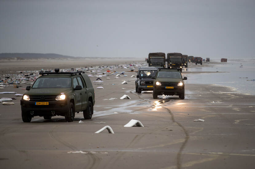 De hulptroepen van Defensie nemen de moeilijk bereikbare oostkant van Schiermonnikoog voor hun rekening. Met militaire voertuigen worden de mannen en vrouwen op verschillende punten langs het strand afgezet. Ter plekke is de schok groot. Soldaat 1 Mirande: “Zóveel rommel had ik echt niet verwacht. We moeten aan de slag, dat is duidelijk. Ik ben blij dat ik mijn steentje kan bijdragen.”